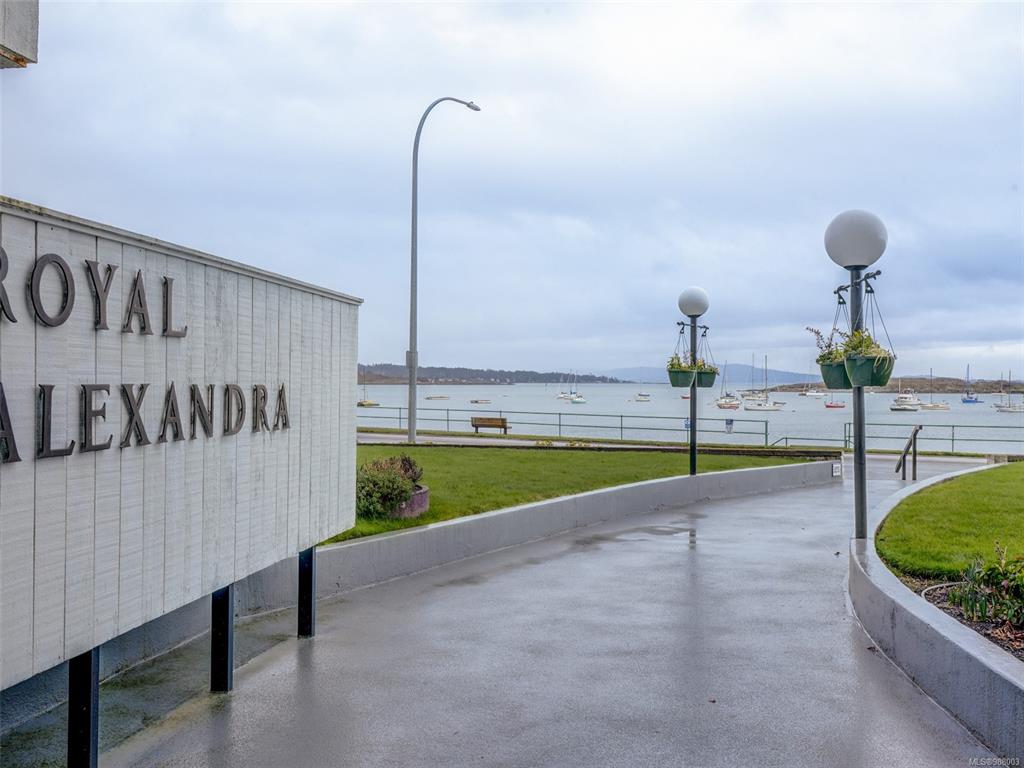 Welcome to the Royal Alexandra, ideally situated on coveted Beach Drive in South Oak Bay. This meticulously maintained steel and concrete building offers a bright, 1-bedroom, 1-bath unit. Boasting an updated kitchen, spacious living and dining area, a generously sized primary suite and a private covered balcony with ocean views. Enjoy a range of amenities, including a storage locker, secure bike lock-up, workshop, underground parking, and convenient laundry facilities on each floor. This is lifestyle living at its best, in an amazing spot with oceanside walkways, steps to the Marina, Windsor Park & Victoria Golf Club or shopping at Oak Bay village all within walking distance from your home. An Incredible opportunity to explore and enjoy all that Oak Bay has to offer.
