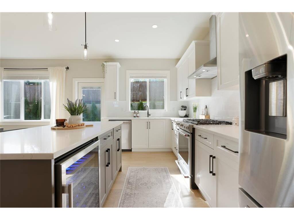 ONE OF THE NICEST HOMES on Timber Ridge Court! This move-in-ready, bright, and spacious beauty, built in 2021 by Walking Stick Developments, is ideally located on a private cul-de-sac with a south-facing backyard! The modern kitchen, complete w/island, ss. appls, a gas range, quartz countertops, soft-close cabinets, wine fridge & hardwood flrs. Stay comfortable year-round with the efficient heat pump for heating and cooling and a cozy gas fireplace. Upstairs, find three spacious bedrooms, including a primary suite with a huge walk-in closet and a luxurious ensuite. Outside, the fully fenced, low-maintenance, south-facing backyard. Additional perks include a gas BBQ outlet, a fully reversible garage-turned-office space, and an electric car hook up This bareland strata is only $29 a month. Enjoy peace of mind with the remaining 2-5-10 home warranty in this family-friendly neighbourhood close to schools and amenities. A private location and great neighborhood to enjoy!